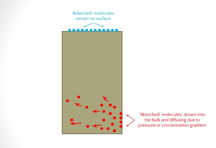 - Absorption is the dispersion of the chemical throughout the polymer via (typically) the mechanism of diffusion, which is the penetration of the chemical into the polymer.