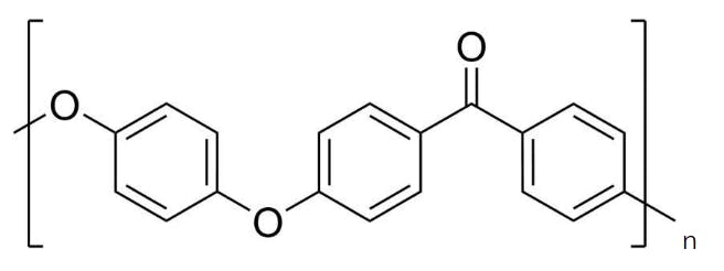 가장 잘 알려진 PAEK 계열의 소재는 PEEK다. PEEK 소재의 반복 단위(repeat unit)는 다음과 같다.